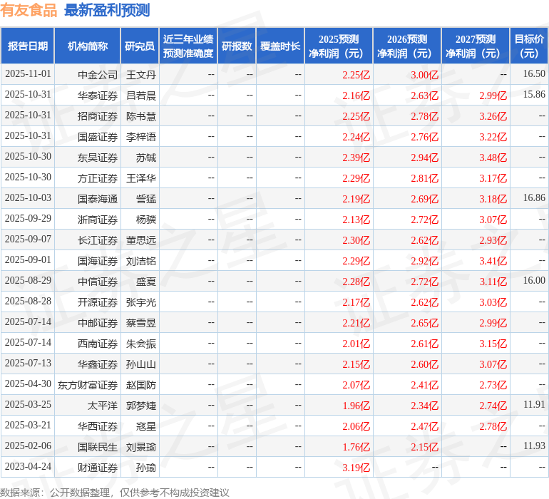 最新盈利预测明细如下: