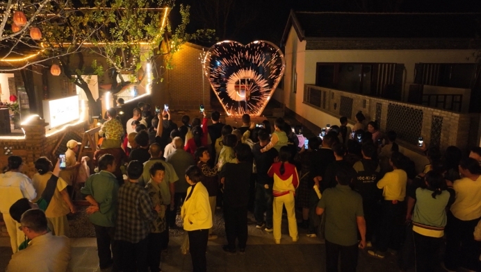 夜幕降临,“唱响炊烟巷”歌唱比赛在古巷舞台拉开帷幕。选手们以嘹亮歌声点燃夜空,引得观众掌声不断。赛事中场,特邀嘉宾献上川剧变脸与喷火表演,演员身形变幻、火焰腾空,将传统技艺的震撼力展现得淋漓尽致,将现场气氛推向高潮。随后,爱心风火轮表演在夜空中划出绚烂轨迹,火花四射、光影交错,为游客带来一场视觉盛宴。