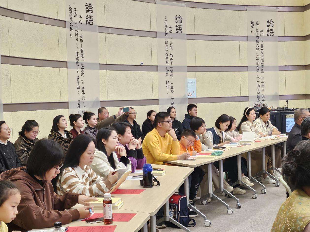 活动现场,来自新疆、河北等地的传统文化爱好者与楚天数字书院研学班师生踊跃提问,与嘉宾展开热烈互动。活动尾声,全体参与者齐声诵读《论语》经典章句,琅琅书声回荡厅内,让千年智慧在当下焕发新生。此外,“论语生活美学展区”与“智慧之泉”互动墙等沉浸式体验环节,也让读者在场景中感受经典与日常的融合之美。
